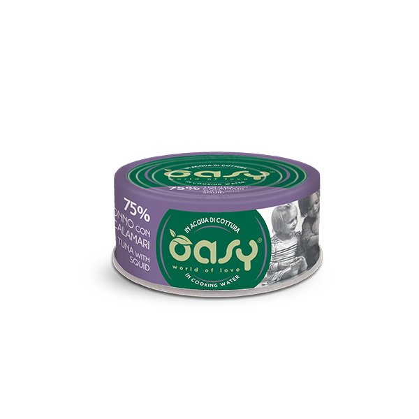 Composizione (Tonno con Calamari): tonno 70%, calamari 5%, riso 1%, aroma naturale 1%.