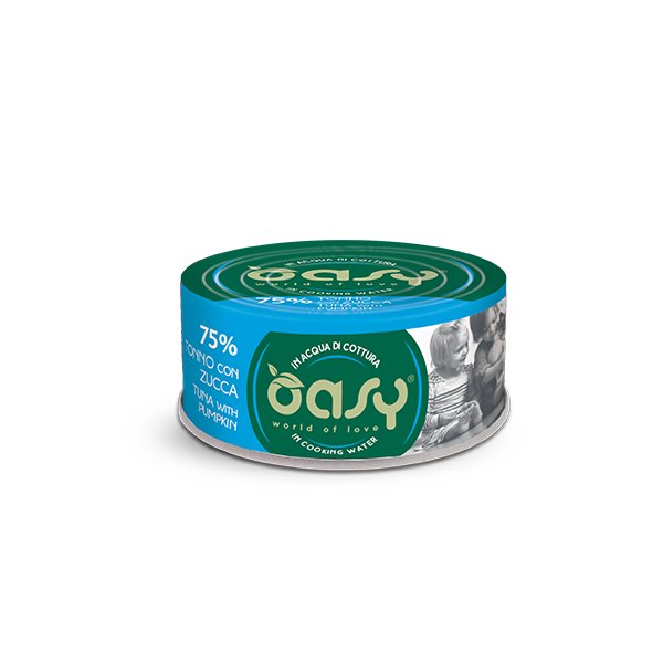 Composizione (Tonno con zucca): tonno 70%, zucca 5%, riso 1%, aroma naturale 1%.