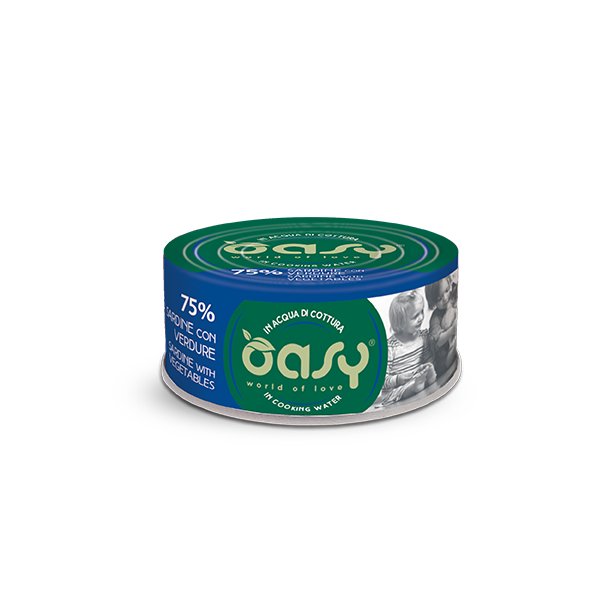 Composizione (Sardine con verdure): sardine 70%, carote 3%, piselli 2%, riso 1%, aroma naturale 1%.