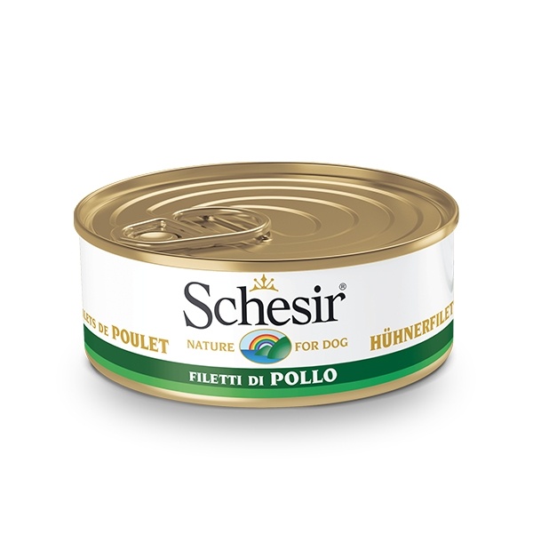 Una ricetta Schesir a base di veri filetti di pollo, per offrire al tuo cane tutto il piacere delle migliori carni selezionate. La ricetta viene preparata in gelatina, per un pasto sfizioso e originale.