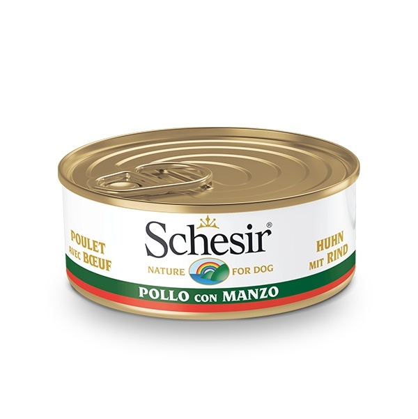 Una ricetta Schesir a base di veri filetti di pollo, arricchito da manzo, per offrire al tuo cane tutto il piacere delle migliori carni selezionate. La ricetta viene preparata in gelatina, per un pasto sfizioso e originale.