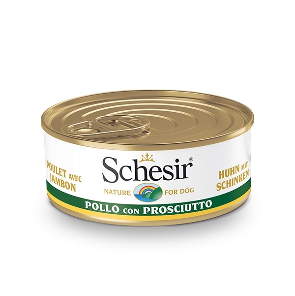 Una ricetta Schesir a base di veri filetti di pollo, arricchiti da gustoso prosciutto, per offrire al tuo cane tutto il piacere delle migliori carni selezionate. La ricetta viene preparata in gelatina, per un pasto sfizioso e originale.
